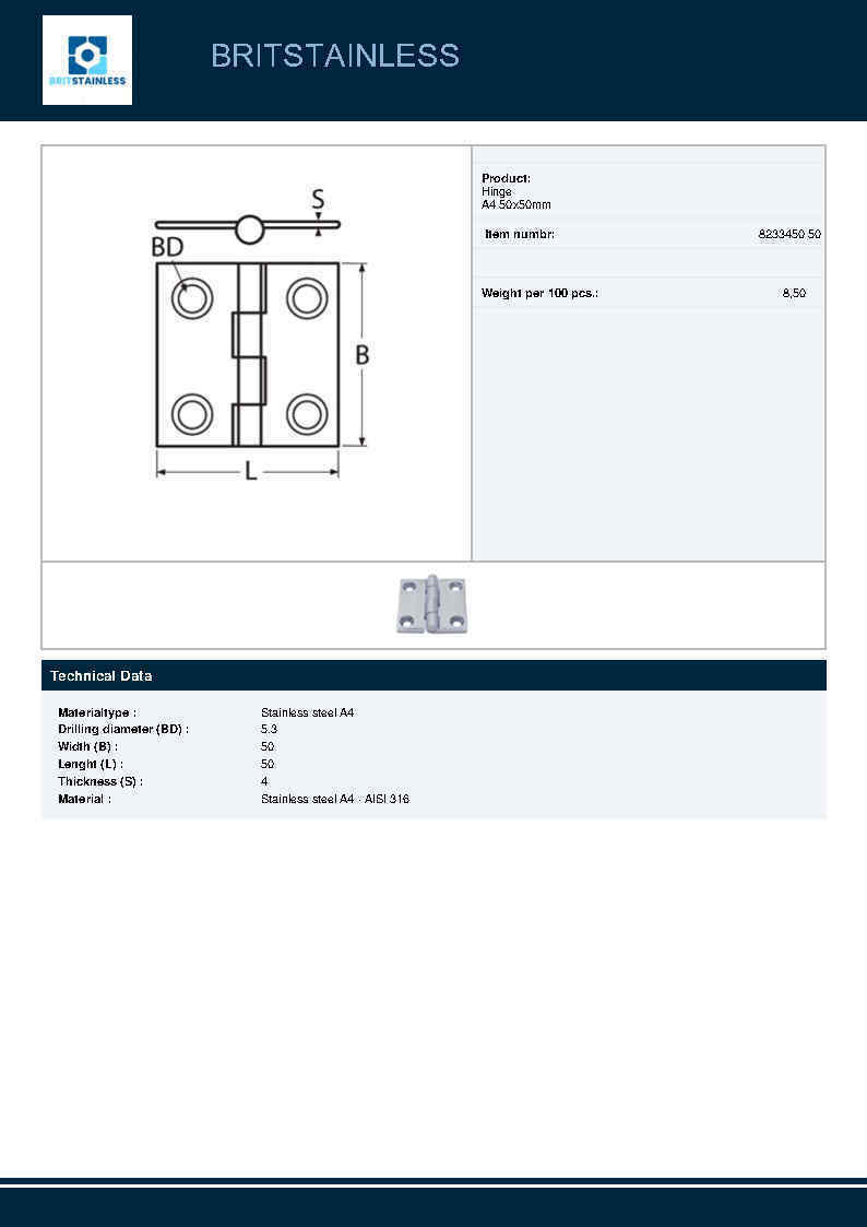1 – 50mm X 50mm HEAVY DUTY BUTT HINGE- A4 316 MARINE GRADE STAINLESS STEEL-HIGH QUALITY POLISHED FINISH